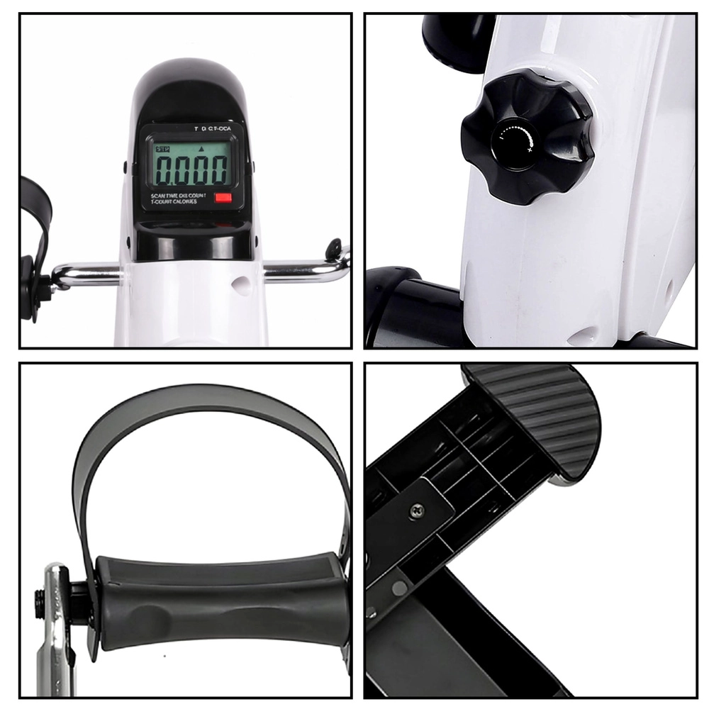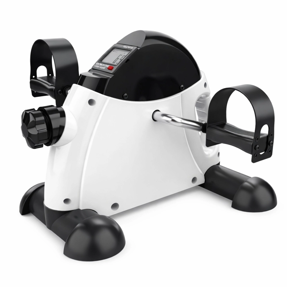 Kompakt mini szobabicikli otthoni edzéshez, amely kényelmes láb- és karkondicionálást tesz lehetővé a nap bármely szakában. Folyamatos és halk működést, állítható ellenállást és LCD kijelzőt kínál az idő, a megtett távolság, a sebesség és az elégetett kalóriák követéséhez. A csúszásmentes pedáloknak és a stabil kialakításnak köszönhetően ideális rehabilitációhoz, állóképesség-javításhoz és a mindennapi aktív üléshez otthon vagy az irodában.