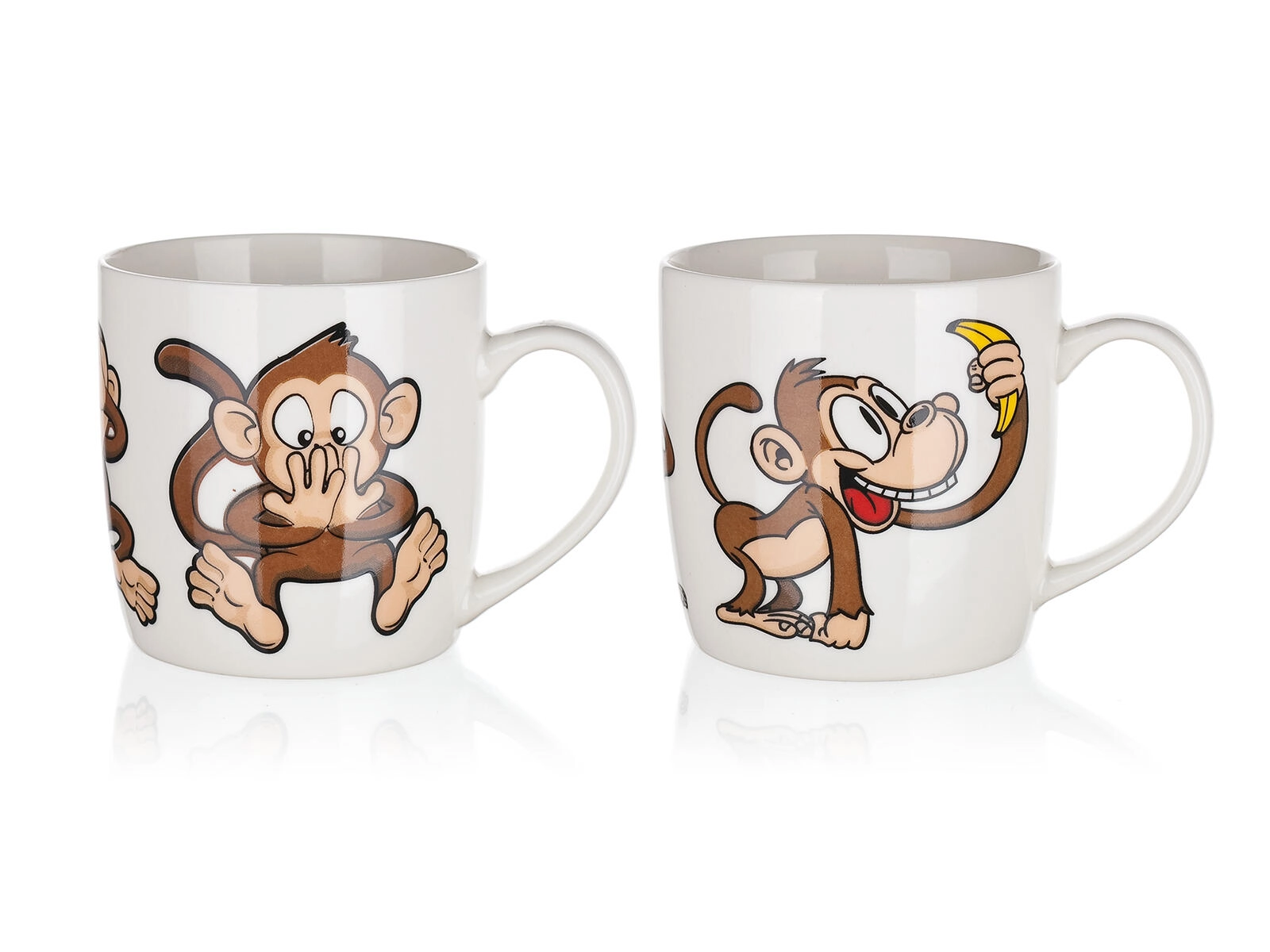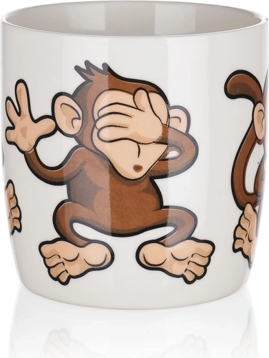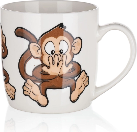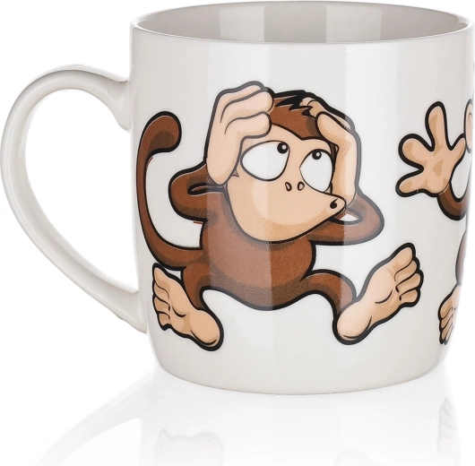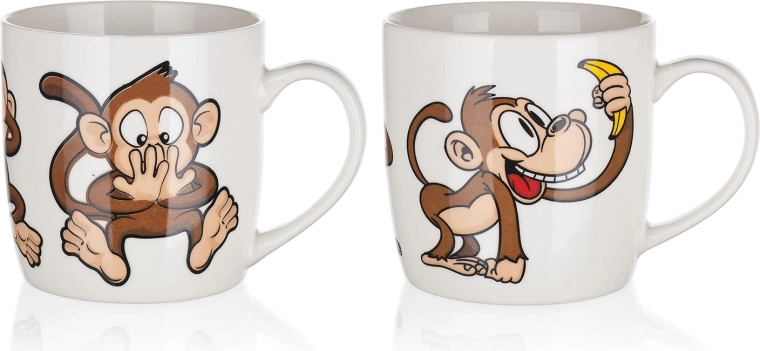 Vidám majmos motívumok vegyes dekorokban, amelyek jókedvet hoznak a kávé- vagy tead szünetbe, és ajándéknak is kiválóak.