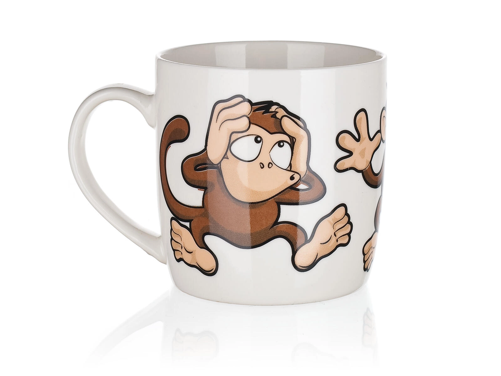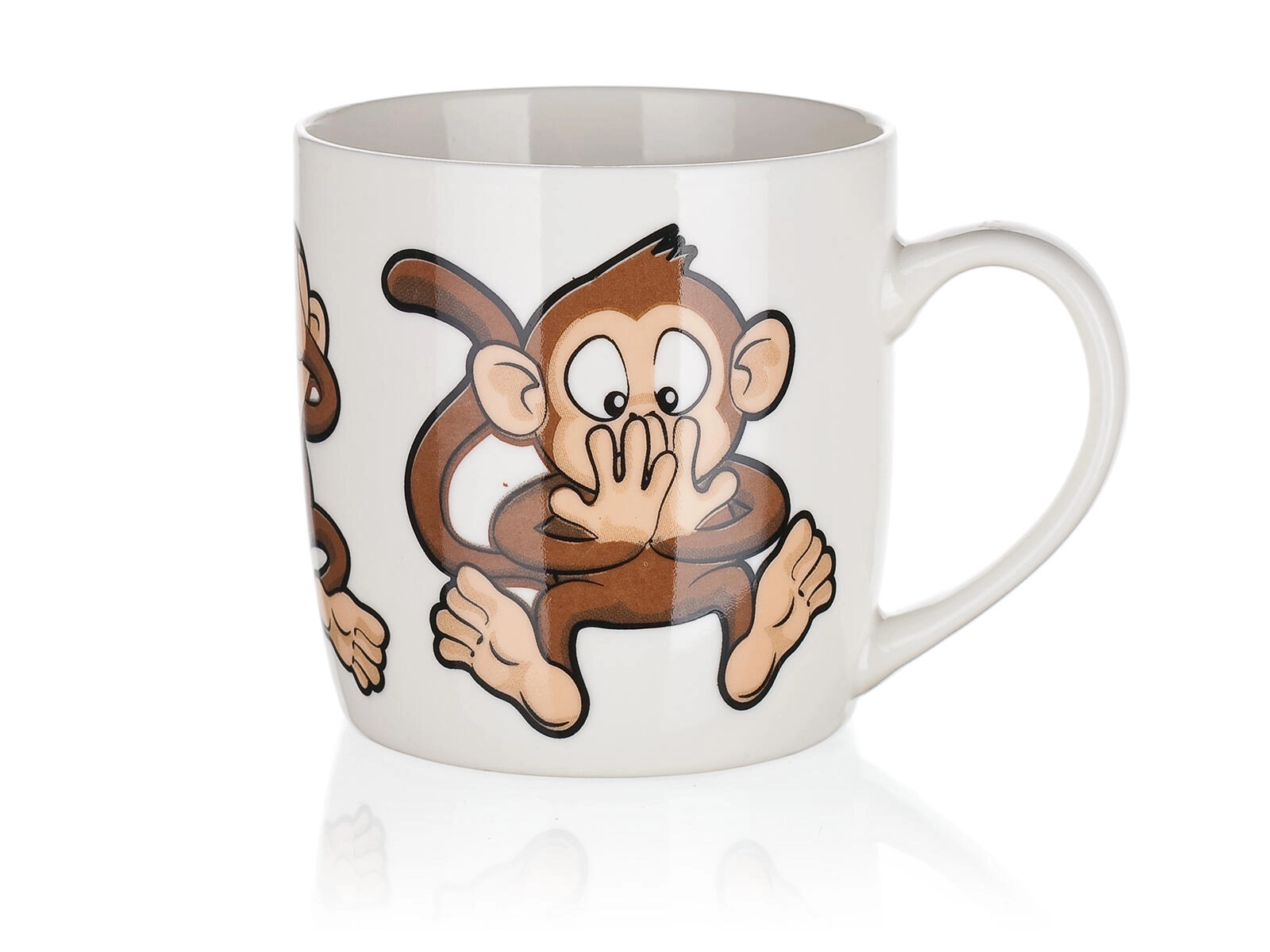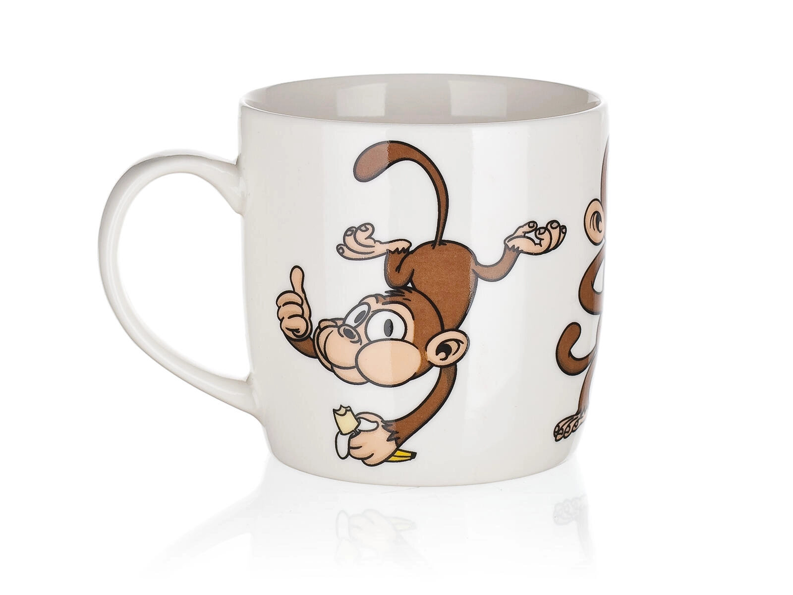 Olyan bögrét keres, amely feldob bármilyen asztalt? A 320 ml-es, majmos mintájú kerámia bögre a praktikumot játékos esztétikával ötvözi. A fényes máznak és a minőségi kerámiának köszönhetően kellemes fogású, és tovább melegen tartja az italt.