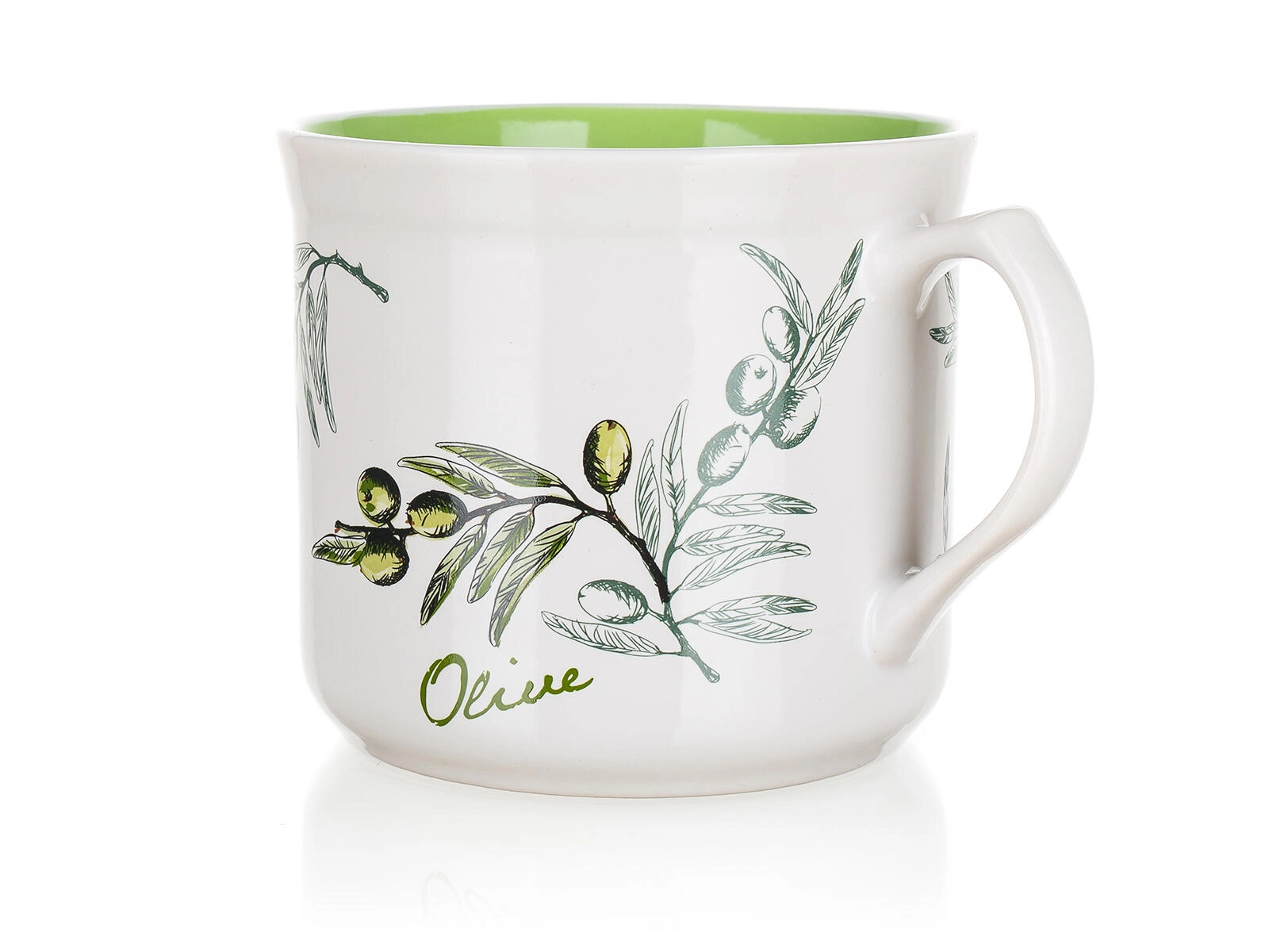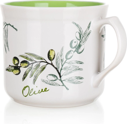 Stílusos Big Olives kerámia bögre 630 ml űrtartalommal, ideális a mindennapi italfogyasztáshoz. A nagy űrtartalomnak köszönhetően élvezheti a kávét, teát és a hideg italokat is, miközben az olívás dekoráció mediterrán hangulatot kölcsönöz konyhájának.