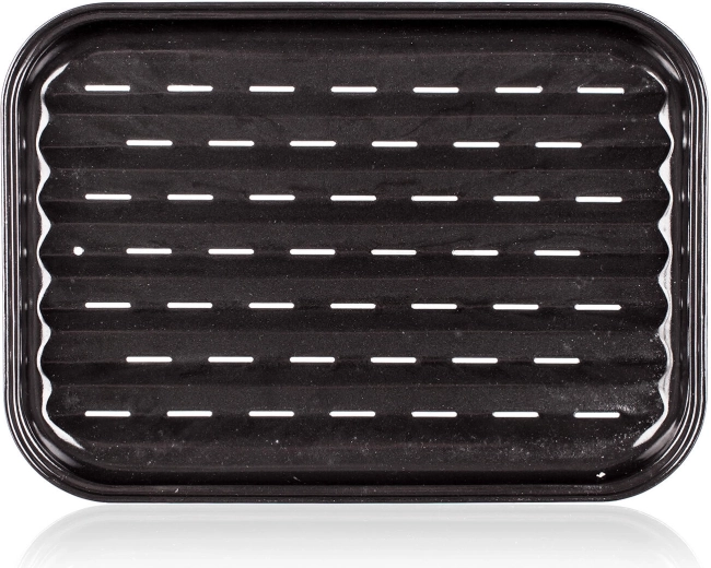 A 35 × 24 cm-es zománcozott grilltepsi kiváló választás mindenkinek, aki szaftos eredményt szeretne felesleges rendetlenség nélkül. A tartós, zománcozott felület könnyen tisztítható és ellenáll a magas hőmérsékletnek, míg a megemelt peremek segítenek bent tartani a szaftot és a zsírokat.