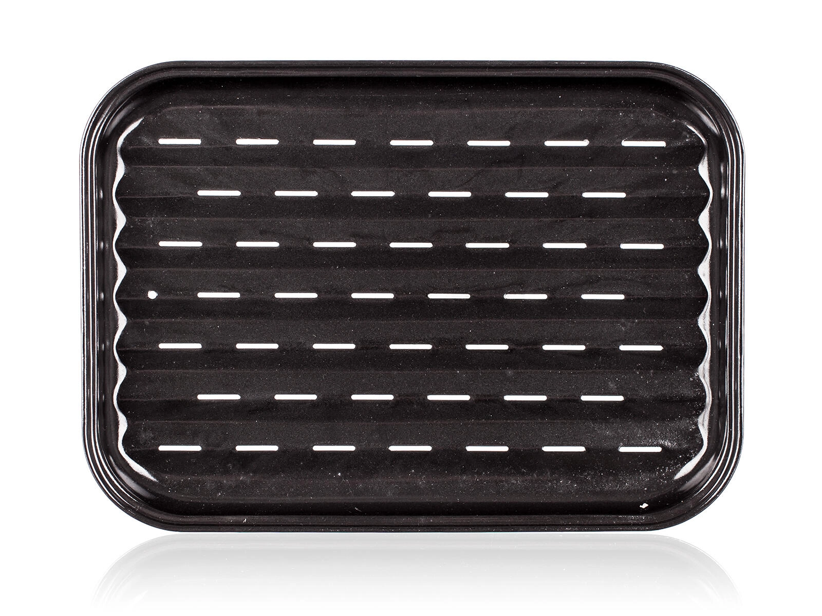 Praktikus, zománcozott grilltepsi 35 × 24 cm méretben, elegáns fekete színben. Ideális zsíros és szaftos ételek elkészítéséhez. Megbízhatóan felfogja a szaftot, és csökkenti a lecsepegő zsír okozta váratlan fellángolásokat, így tisztább és biztonságosabb sütést és grillezést biztosít.