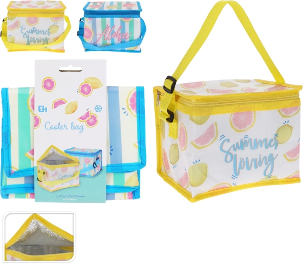 Praktikus, 4 l űrtartalmú hűtőtáska, amely kirándulásokon, nyaraláson és utazás közben kellemesen hűvösen tartja italait és harapnivalóit. A minőségi belső szigetelésnek köszönhetően állandó hőmérsékletet biztosít, könnyű, helytakarékos és egyszerűen hordozható. Vegyes színekben és mintákkal kapható – sárga SUMMER vagy kék ALOHA.