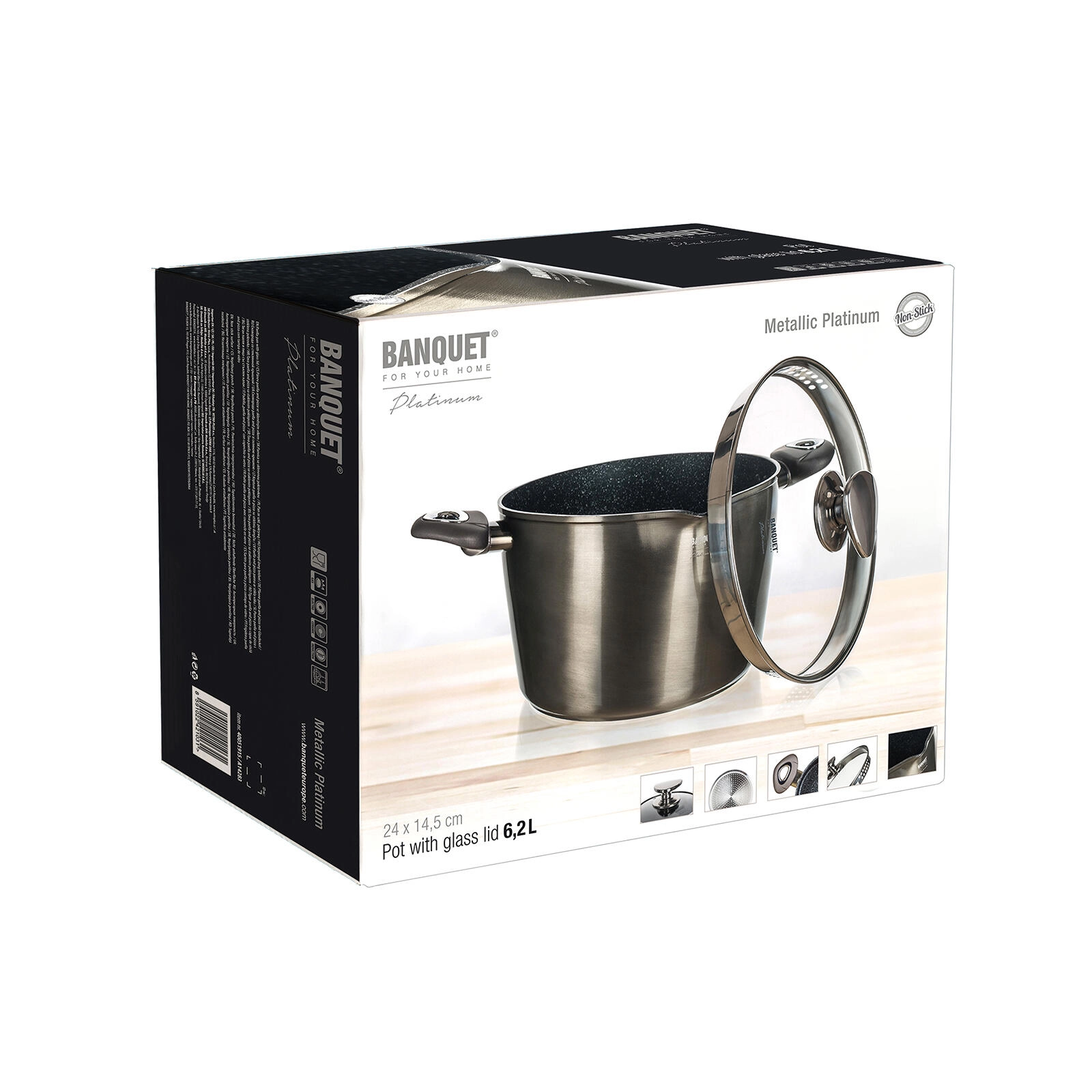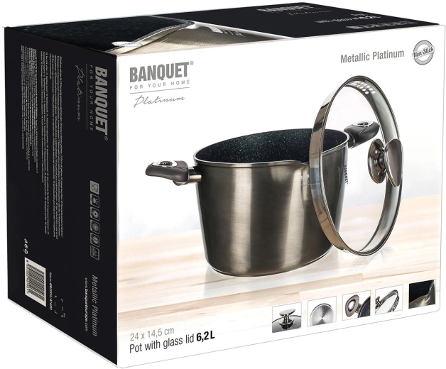 Főzzön leveseket, mártásokat és tésztát odaégés nélkül. A METALLIC PLATINUM fazék kiemelkedik öntött alumínium testével és masszív, 3 mm vastag falával az egyenletes hőelosztásért és energiatakarékos főzésért. A tapadásmentes felület rendkívül kemény, karc‑ és ütésálló, így a mindennapos használatban is helytáll.