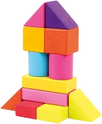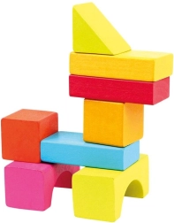 A vödörben 100 különböző alakú színes kocka található, amelyek hosszú órákra lekötik a gyerekeket. A vödör fedele beillesztő játéként is szolgál, ami segít a gyermekeknek a különböző formák felismerésében és a finommotorika fejlesztésében.