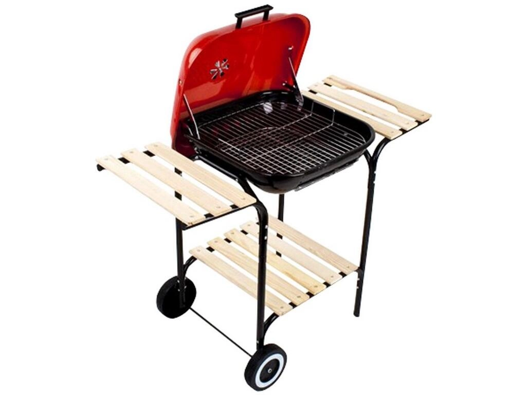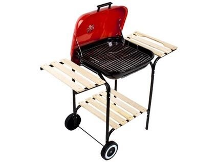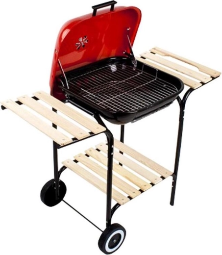 A zománcozott felületű tűztér hőálló és könnyen tisztítható, míg a piros porszórt fedél stílusos megjelenést ad a grillnek és véd az időjárástól. A fa tárolópolcok elegendő helyet biztosítanak az eszközöknek és alapanyagoknak, a görgőknek köszönhetően pedig a grillt könnyedén áthelyezheti oda, ahol épp szükség van rá.