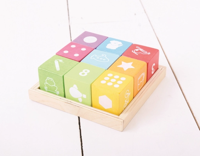• Praktikus csomagolás: 9 kocka + fa tálca az áttekinthető tároláshoz.