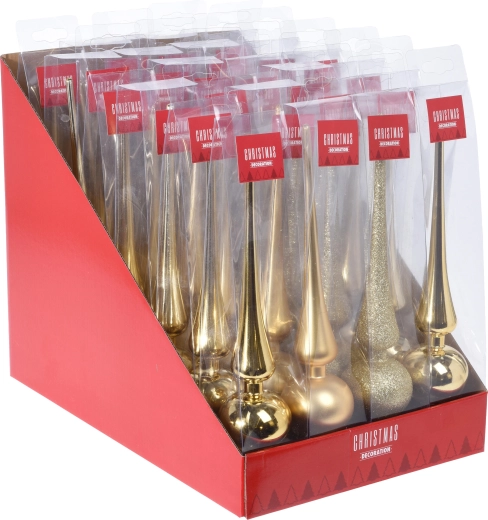 Univerzális formájának köszönhetően a csúcs könnyen felhelyezhető a fa tetejére, és stabilan a helyén marad. Ideális kisebb és közepes méretű fákhoz, és a teljes dekorációnak harmonikus, reprezentatív megjelenést kölcsönöz.