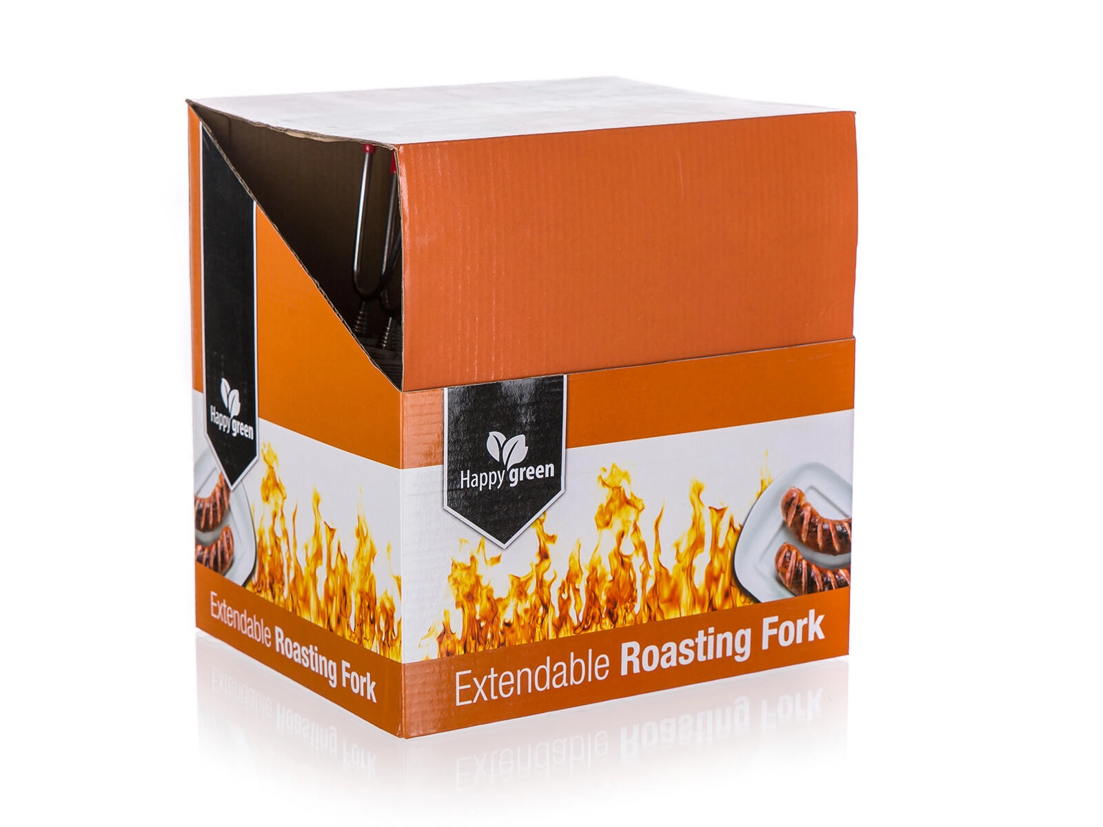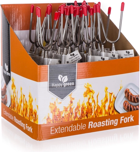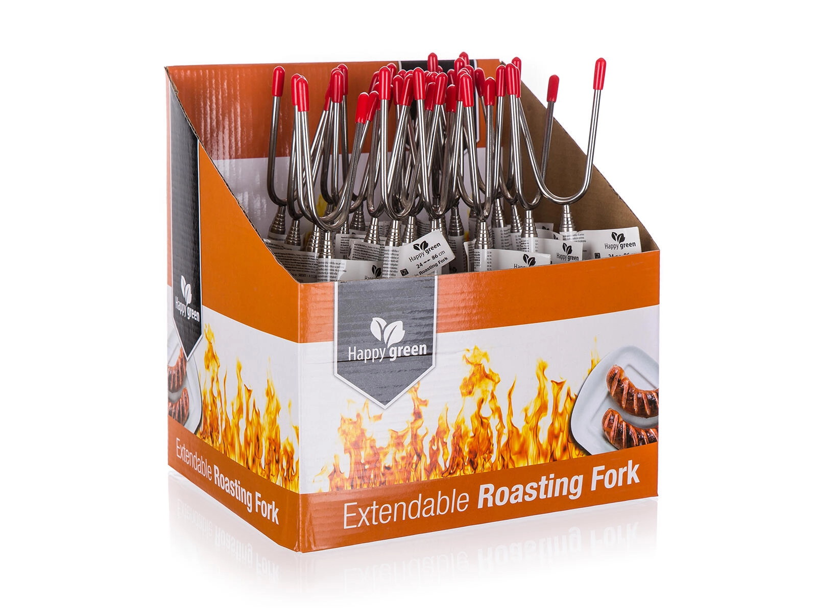 Praktikus teleszkópos nyársvilla állítható 24–86 cm hosszúsággal, rozsdamentes acélból és kényelmes PVC markolattal. Ideális virsli, kolbász és zöldség sütéséhez tűz fölött vagy grillen, két erős heggyel a biztonságos felnyársaláshoz.