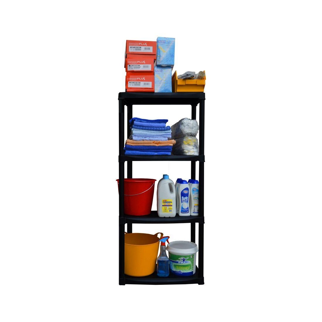 Maximalizálja a tárolóhelyet ezzel a sokoldalú műanyag polcrendszerrel, amelyet gyorsan, szerszámok nélkül összeállíthat. Tökéletes szerszámok, anyagok, szezonális tárgyak vagy készletek rendszerezésére, és kompakt méreteinek köszönhetően kisebb helyiségekbe is befér.