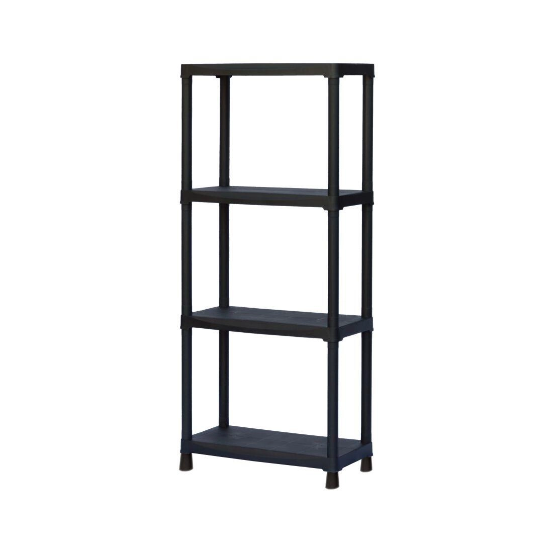 Praktikus és tartós műanyag polcrendszer 600 × 300 × 1330 mm méretben, 4 tágas polccal és szerszám nélküli, egyszerű összeszereléssel. Ideális garázsba, műhelybe, pincébe és lakásba. A polipropilén anyagnak köszönhetően könnyen tisztítható és strapabíró, polconként 20 kg teherbírással.