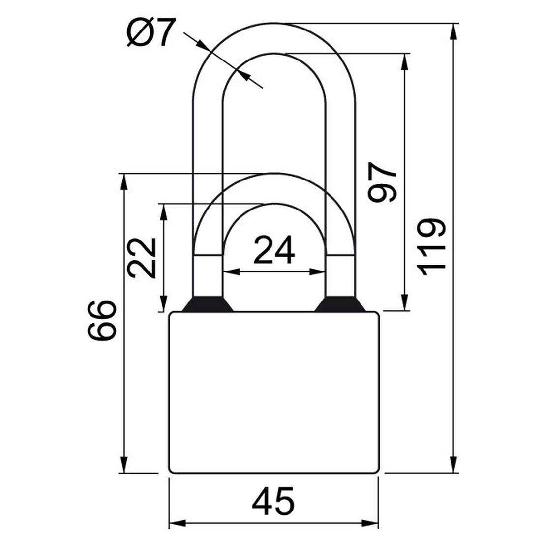 Megbízható öntöttvas RICHTER OVAL 45 lakat hosszított, edzett HARDENED kengyellel és kettős reteszeléssel a nagyobb ellenállásért. Kínál kulcs nélküli zárást a kengyel benyomásával, azonos zárlat (SU) lehetőséget, valamint fokozott vízvédelmet gumigyűrűknek köszönhetően. A csomag tartalma 3× kulcs.