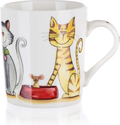 Aranyos kerámia bögre DOG AND CAT mintával, 250 ml űrtartalommal, amely gyerekeknek és felnőtteknek egyaránt örömet szerez. Forró és hideg italokhoz egyaránt alkalmas, mosogatógépben mosható és mikrohullámú sütőben használható, a többféle dekor révén pedig mindenki megtalálja a kedvencét.