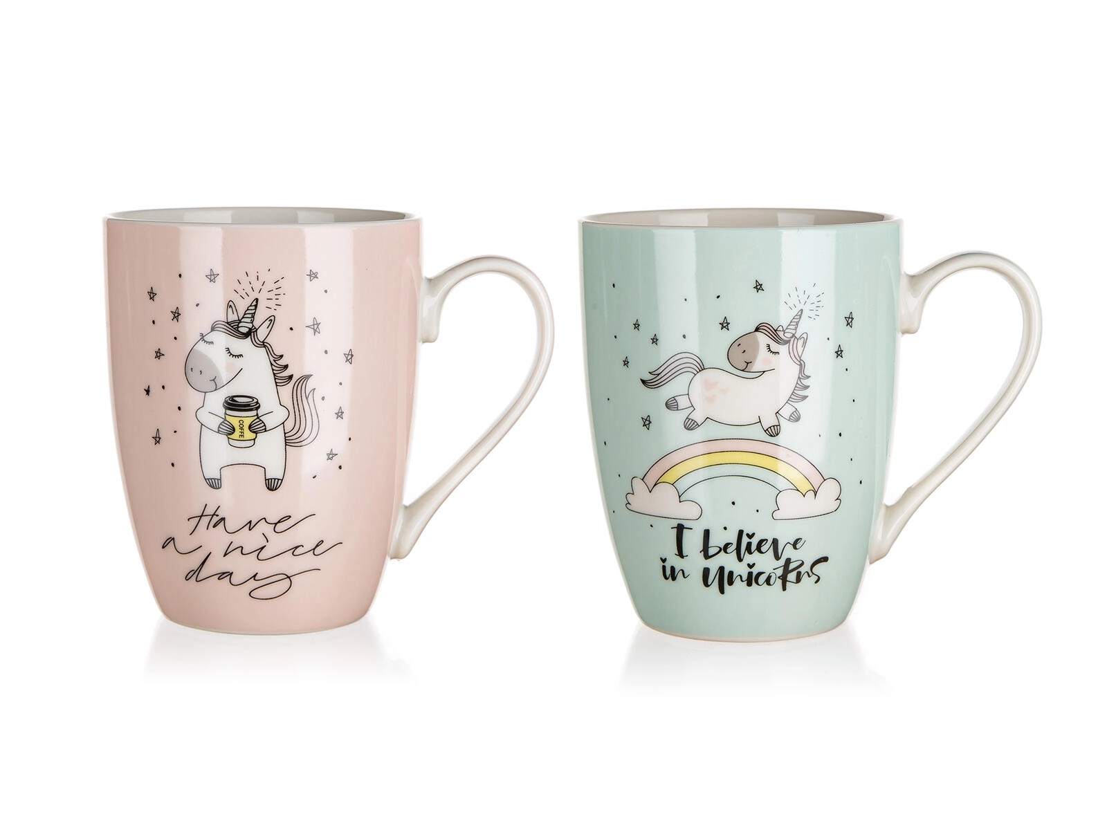 Két vidám unikornisos minta pozitív feliratokkal feldobja a reggelt és a munkahelyi szünetet is. Remek, kedves ajándék gyerekeknek és felnőtteknek egyaránt.