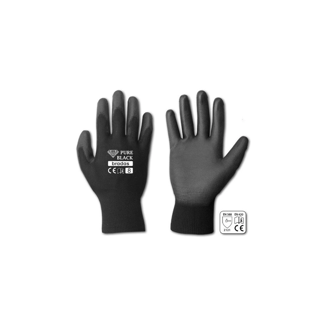 Olyan kesztyűt keres, amellyel finom, pontos munkát végezhet, miközben megóvja a kezét? A PURE BLACK PU kesztyű 9-es (L) méretben rugalmas poliészter kötött anyagot kombinál tartós PU bevonattal a tenyéren és az ujjakon. Ennek köszönhetően kiváló részletérzetet, biztos fogást és kopásállóságot nyújt.