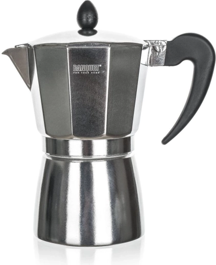 Hagyományos mokkafőző otthoni erős és aromás kávé készítéséhez. Az alumínium test gyorsan vezeti a hőt, és idővel patinát képez a teljesebb ízért. Gáz-, elektromos és üvegkerámia főzőlapokhoz alkalmas, biztonsági szeleppel felszerelve.