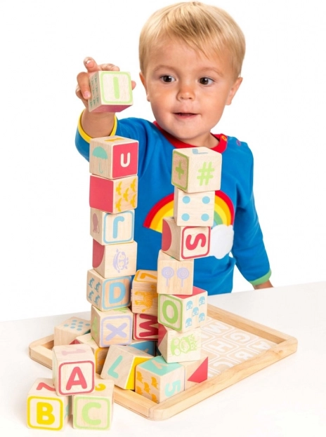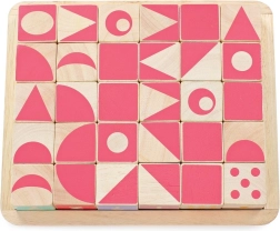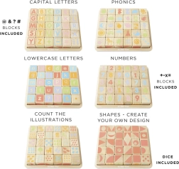 A kockák és a tárolóalap lekerekített élei kényelmes és biztonságos használatot biztosítanak. A játék műanyagmentes, FSC tanúsítvánnyal rendelkező fából készül, etikus gyártással és fenntarthatósággal a középpontban. A készlet támogatja a kognitív készségek, a térbeli képzelőerő és a nyelvi képességek fejlődését.
