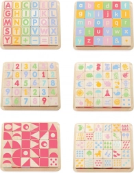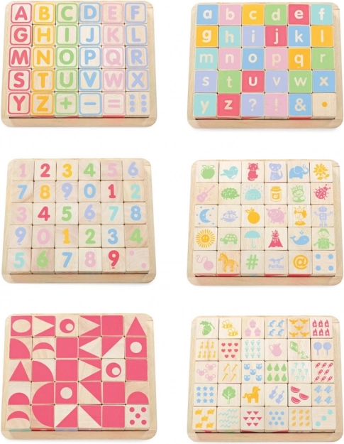 Minden kockaoldal más motívumot kínál – ábécét, számjegyeket, formákat és szimbólumokat. A gyerekek természetesen gyakorolják a felismerést, a szókirakást és az egyszerű számolást.