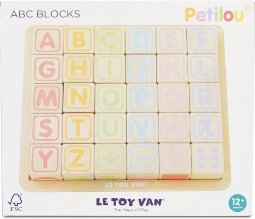 A LE TOY VAN Petilou készlet ideális fejlesztő játék 12 hónapos kortól. Minden kocka egyedi, kézzel szitázott mintával, és különböző oldalain betűket, számjegyeket, formákat, állatkákat és szimbólumokat kínál. A robusztus gumifa és a vízbázisú festékek révén a kockák tartósak, biztonságosak és kellemes tapintásúak.