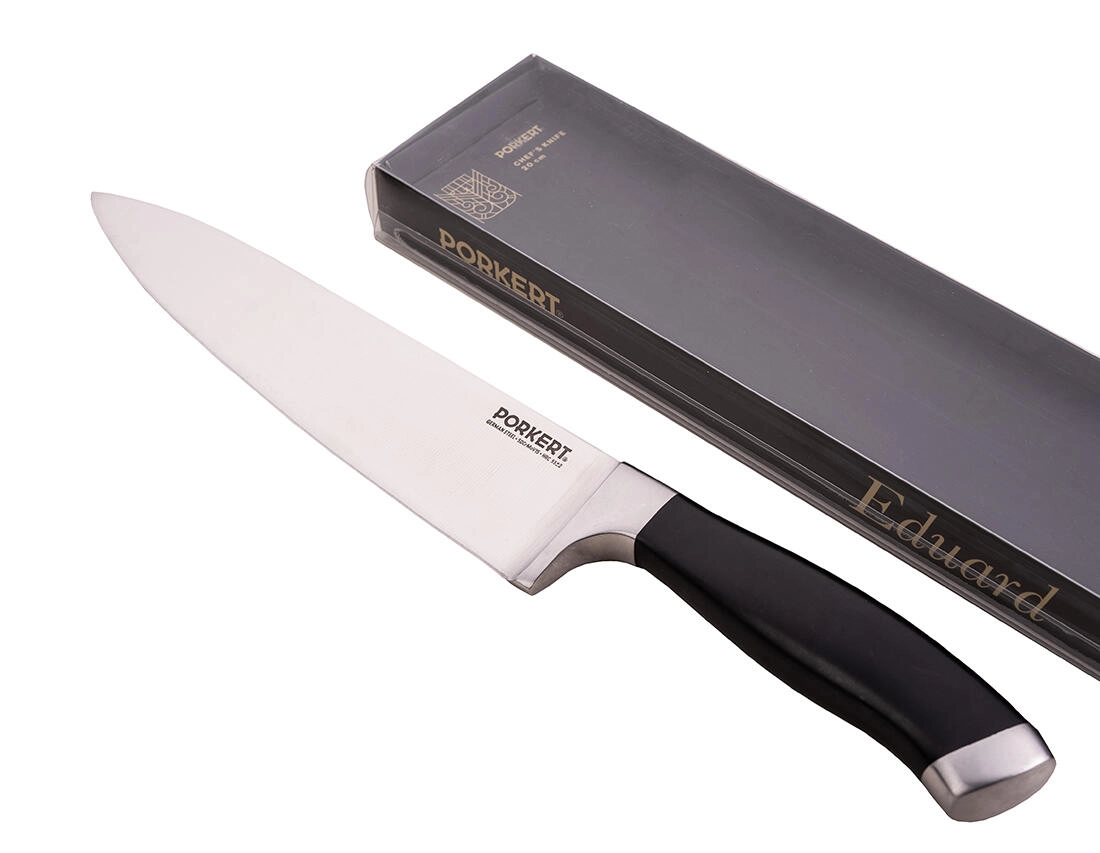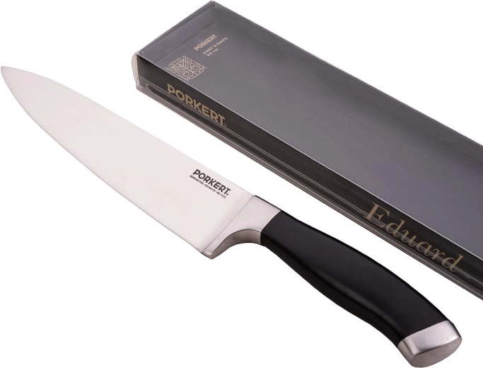 Az EDUARD 20 cm-es szakácskés alapvető eszköz mindenkinek, aki a konyhában gyorsan, pontosan és biztonságosan szeretne dolgozni. A kiegyensúlyozott kialakítás, az univerzális pengeforma és a minőségi anyagok zökkenőmentes szeletelést biztosítanak zöldségekhez, húshoz és fűszernövényekhez.
