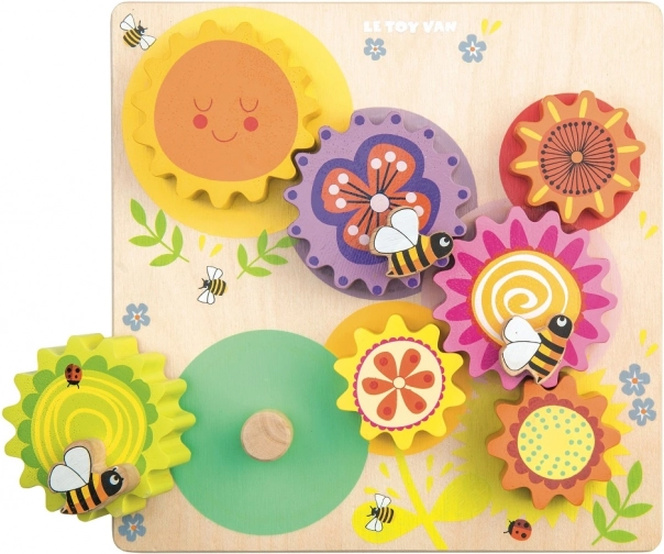 Fából készült fogaskerekek méhecskés motívummal a Le Toy Van-től