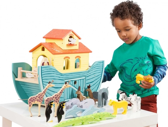 Elbűvölő Noé bárkája a Le Toy Van-től egyedi módot kínál a gyerekek számára, hogy megismerjék Noé bárkájának történetét, miközben kreatív játékot élvezhetnek. Ez a nagy bárka tíz pár kézzel festett állatot és emberi figurát tartalmaz, amelyeket szintén környezetbarát festékekkel festettek le. A bárka elhúzható panellel rendelkezik az elülső részen és nyitható ajtókkal oldalán, amely megkönnyíti a figurák elérhetőségét.