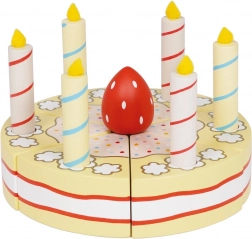 Kezdődhet az ünneplés! Ez a fa, vaníliás születésnapi torta a LE TOY VAN-tól 6 vágható szelettel rendelkezik, amelyeket tépőzár tart össze, és 6 gyertyával érkezik a valósághű szülinapi játékhoz. FSC tanúsított fából készült, vízbázisú, nem mérgező festékkel festve; fejleszti a finommotorikát, a kézügyességet és a szociális készségeket. Ideális játék 2 éves kortól.