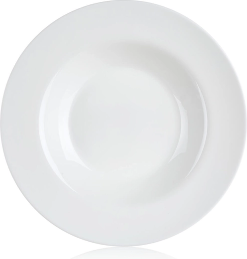 Elegáns, fehér opálüveg tésztástányér 28,5 cm átmérővel, ideális tészták, levesek és saláták tálalásához. Széles pereme és mélyebb közepe szépen megtartja a szószokat. Mosogatógépben mosható és mikrohullámú sütőben használható, minimalista dizájnja pedig remekül illik bármilyen terítékhez.