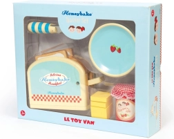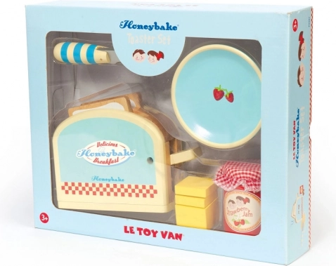 Varázsold különlegessé a reggeli rituálékat a LE TOY VAN Honeybake fa szettjével. A stílusos, rugós kenyérpirító, a kenyérszeletek, a tépőzáras vaj, a lekvár, a kés és a tányér támogatják a képzeletbeli játékot, a finommotorikát és a szociális készségeket. Fenntartható fából készül, nem mérgező festékekkel festve.