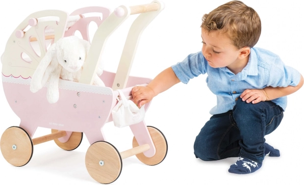 A babakocsi FSC tanúsított fából készül, kézzel utófestve környezetbarát, vízbázisú festékkel, és úgy tervezték, hogy hosszú évekig tartson – ideális darab generációról generációra való továbbadásra. Támogatja a képzelőerőt, a szociális és verbális készségeket, valamint a kognitív fejlődést.