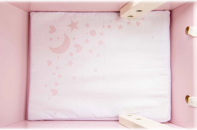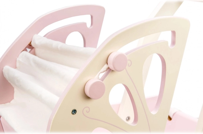 Kényelmet ad a babáknak és a plüssöknek a puha fekhely és a textil baldachin a stílusos „utazó alváshoz”.