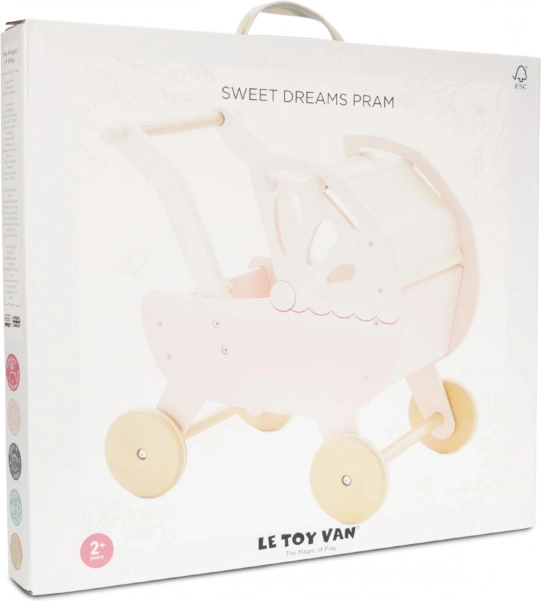 Ajándékozza meg a gyerekeket a képzeletbeli játék varázsával a Sweet Dreams babakocsival, amely gyengéd, szívecskés és csipkés dizájnjával, stabil fa szerkezetével és praktikus részleteivel tűnik ki a mindennapi „sétákhoz” a babákkal. A gumírozott kerekeknek köszönhetően a gurulás csendes és egyenletes minden felületen.