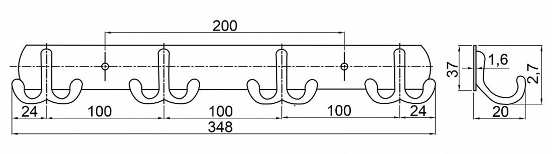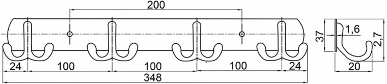 - Fali akasztó négy dupla kampóval