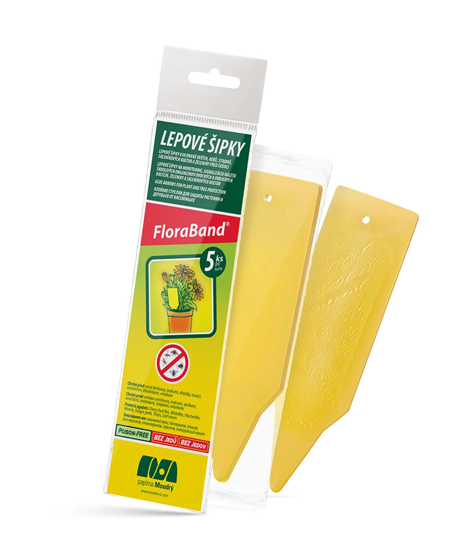 A praktikus Flora Band ragacsos nyilak hatékonyan védik a szobanövényeket és kerti növényeket a kártevőktől. Az élénk sárga szín a kártevőket megbízhatóan vonzza, a ragasztófelület pedig gyorsan csapdába ejti őket. A csomag 5 db nyilat tartalmaz – 3 kétoldalas ragasztófelületűt és 2 egyoldalas ragasztófelületűt – a könnyű elhelyezéshez közvetlenül a termesztőközegbe.
