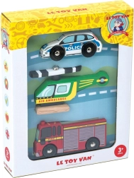Bemutatjuk a Le Toy Van mentőautó készletét – tökéletes ajándék a gyerekeknek. Ez a játék képzeletbeli játékot támogat három mentőjárművel: helikopter, rendőrautó és tűzoltóautó. Mindegyik etikus és fenntartható gumifából készült, és vízbázisú, nem mérgező festékkel van festve, ami biztonságot nyújt a játék során.