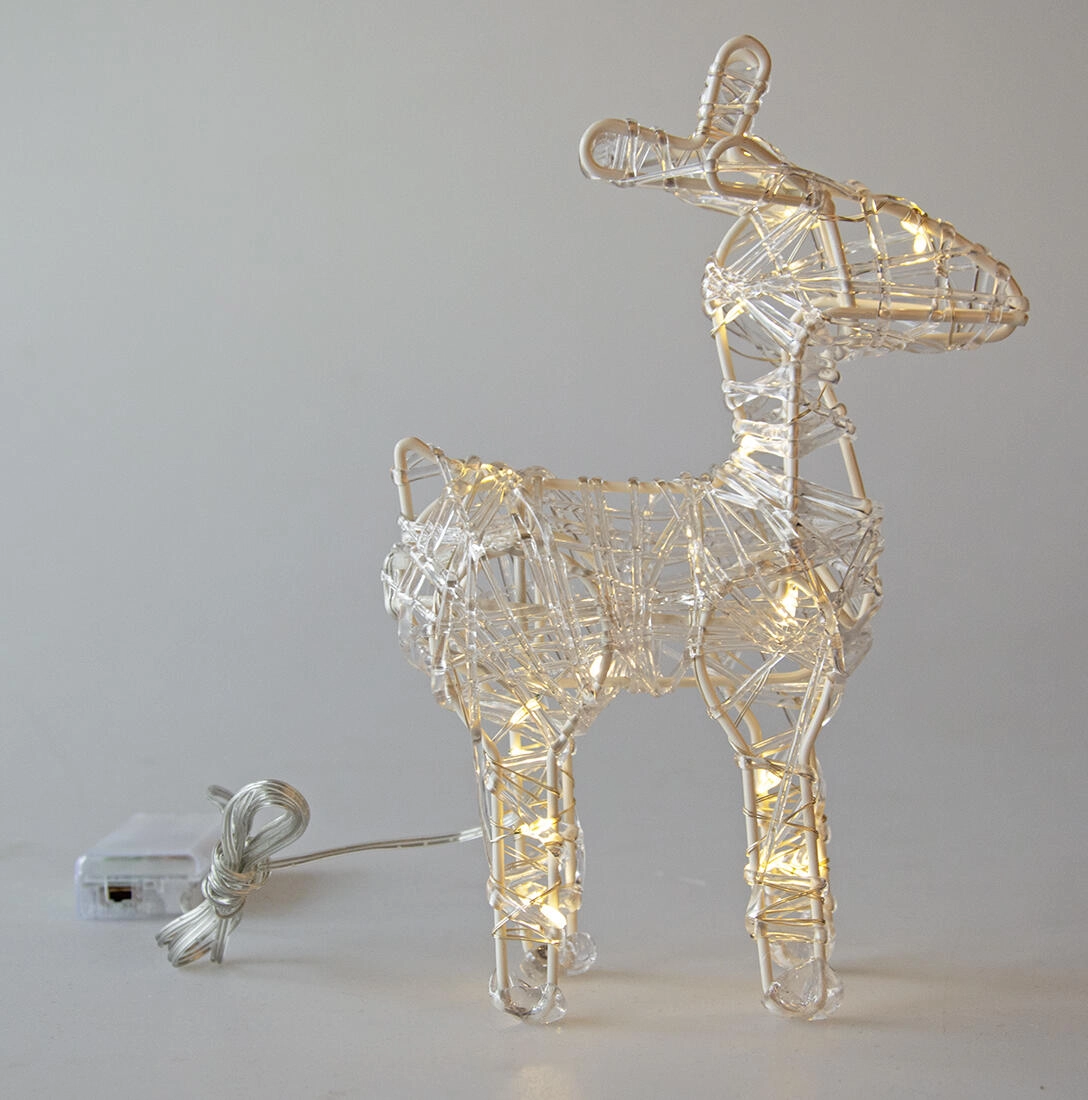 Akril rénszarvas LED dekoráció 20 cm időzítővel, 20 LED