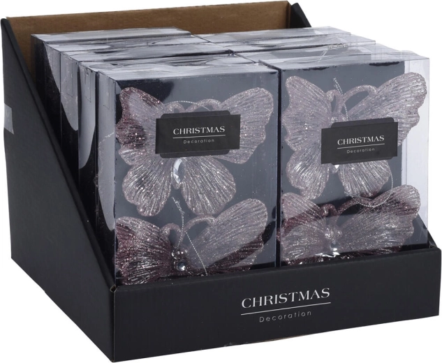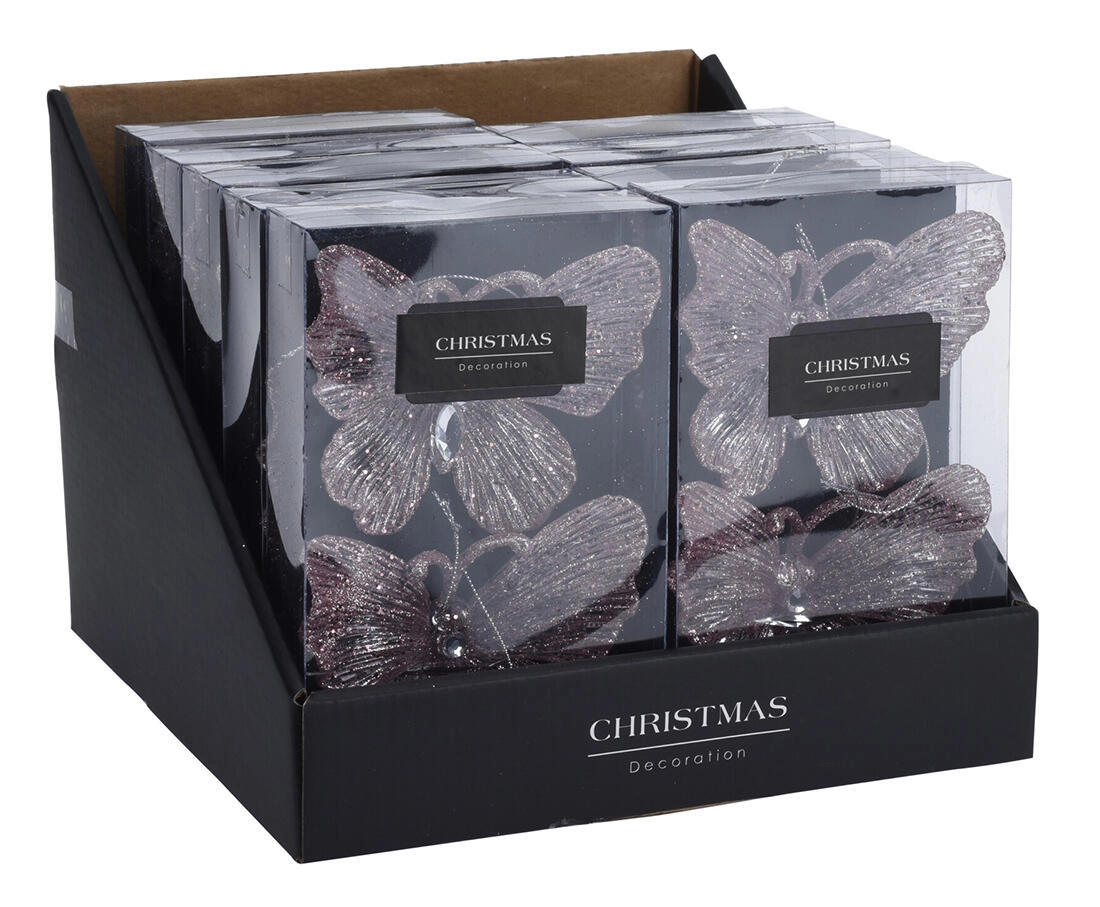 Karácsonyi akrilpillangó dekoráció 11 cm – rózsaszín, 2 darabos készlet