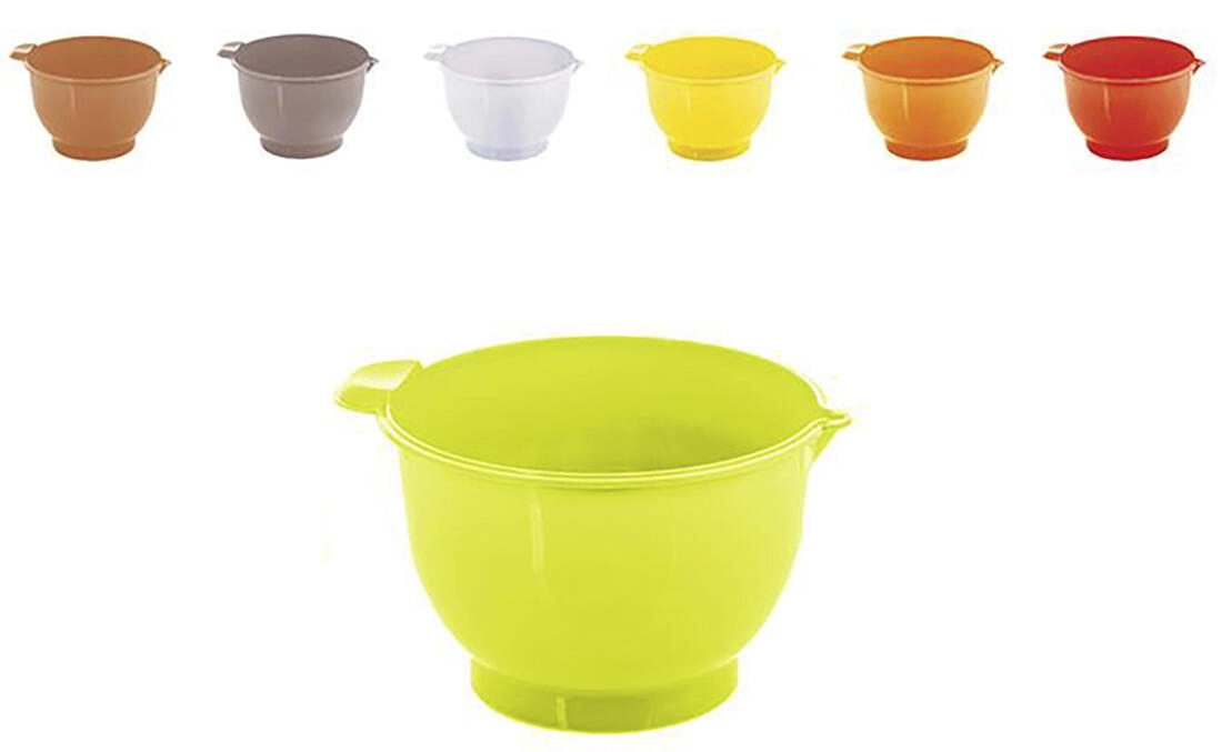 Praktikus, 2 literes habverőtál tartós műanyagból, csúszásmentes gumis aljjal a stabil munka érdekében. Az integrált kiöntőcsőrnek köszönhetően a tészták és krémek átöntése egyszerű és tiszta. Ideális mindennapi sütéshez, krémek vagy tojáshab készítéséhez. Stabil, könnyű és könnyen tisztítható kivitel vegyes színekben.