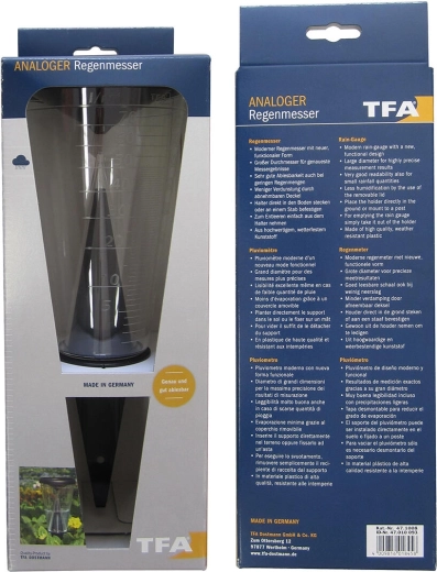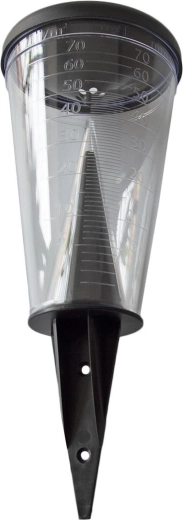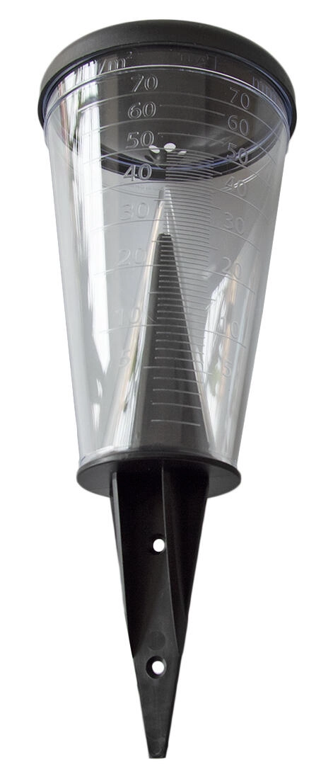 A tölcsér alakú fedél véd a párolgástól, és hatékonyan felfogja az esőcseppeket. A praktikus tartót egyszerűen leszúrhatja a földbe, vagy rögzítheti egy rúdra (a rúd nem része a csomagnak), ami rugalmas elhelyezést tesz lehetővé a lehető legpontosabb méréshez.
