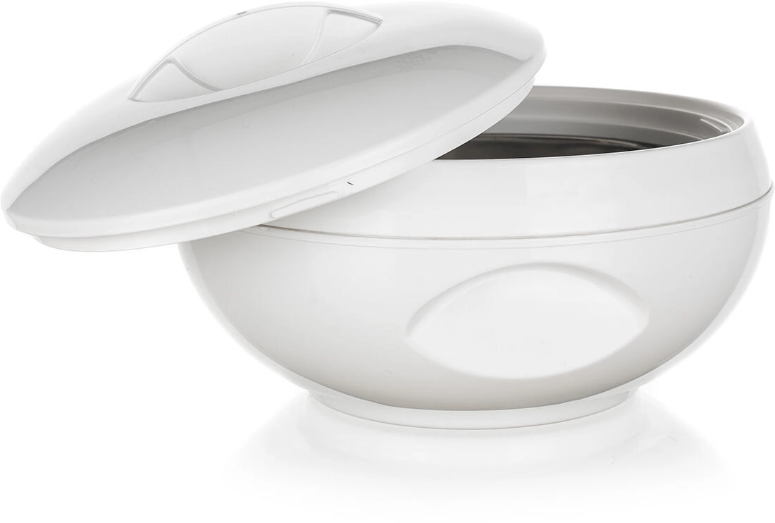 A 5 l űrtartalomnak köszönhetően könnyedén készíthet több adag ételt. A fehér színű, könnyű műanyag külső jól kézben tartható és könnyen karbantartható. A praktikus fogantyúval ellátott fedél segít csökkenteni a hőveszteséget és védi az ételeket szállítás közben.