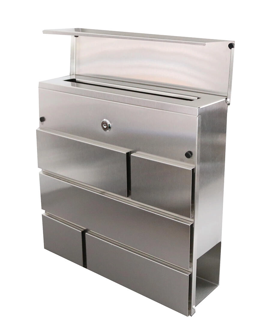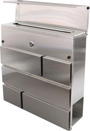 Az elegáns és tartós BRICKS postaláda 201-es típusú rozsdamentes acélból ideális választás családi házakhoz és vállalkozásokhoz. A felső bedobónyílásnak köszönhetően a posta védett az időjárással szemben, a cilinderzárral ellátott, kulcsos ajtó pedig biztonságos kiürítést biztosít.