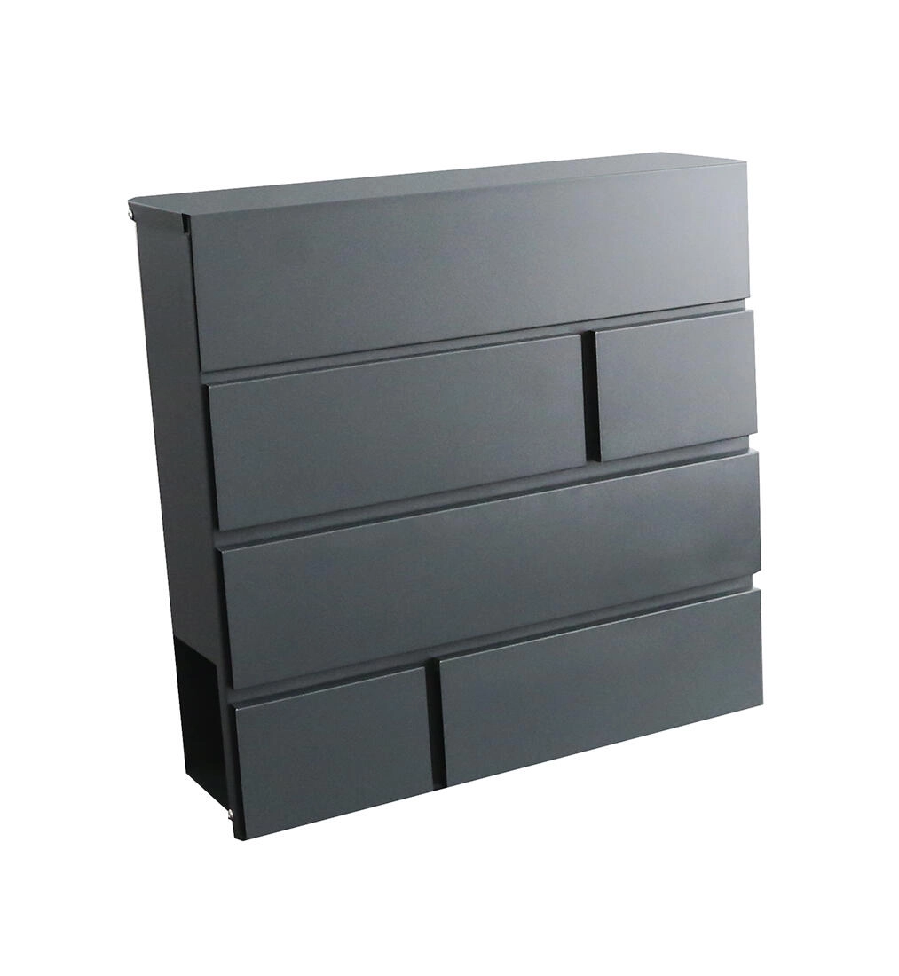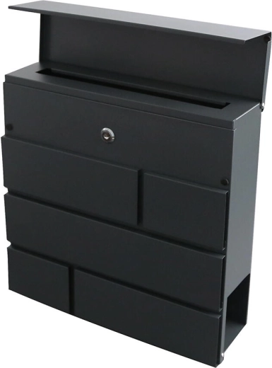 A modern BRICKS postaláda elegáns antracit színben ideális levelekhez, újságokhoz és szórólapokhoz. Felülről történő bedobónyílással, hengerzárral és 2 kulccsal, valamint az alsó részen egy praktikus hengertartóval a nyomtatványoknak rendelkezik. A csomag tartalmaz csavarokat és tipliket a könnyű falra vagy kerítésre szereléshez.