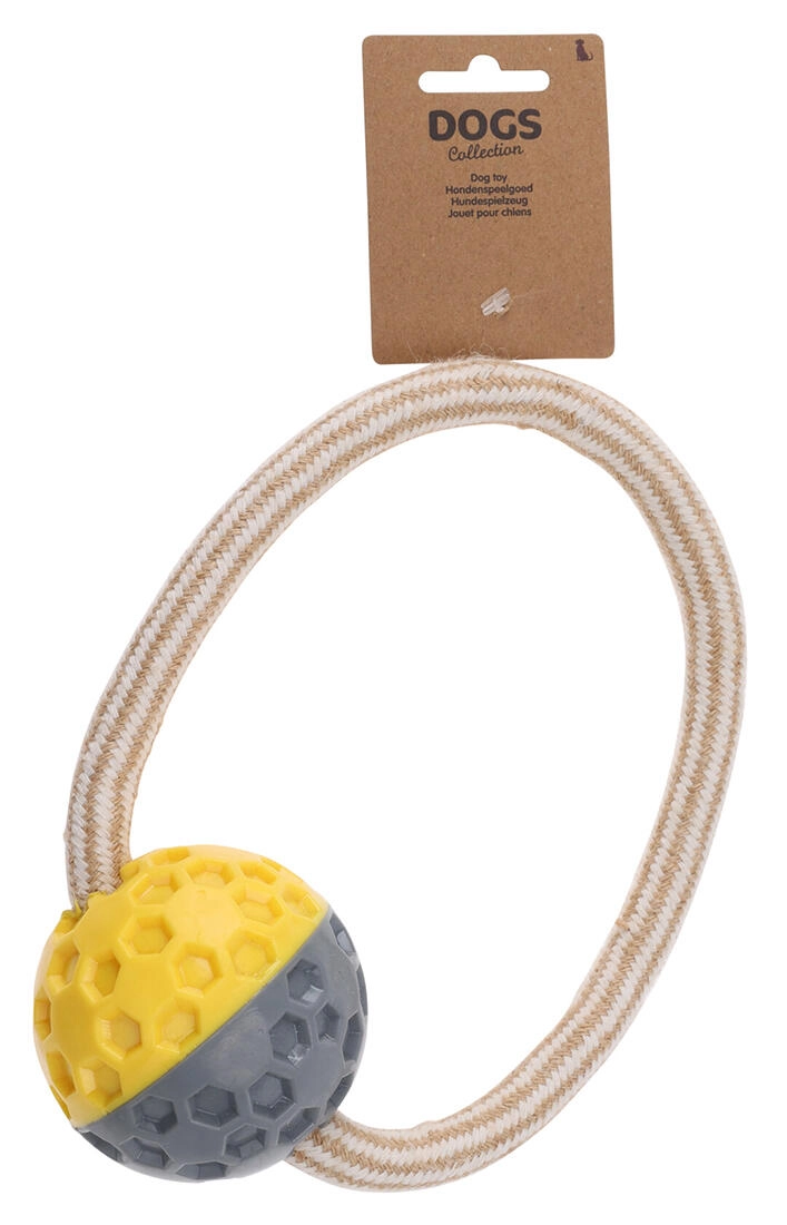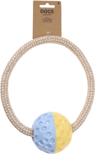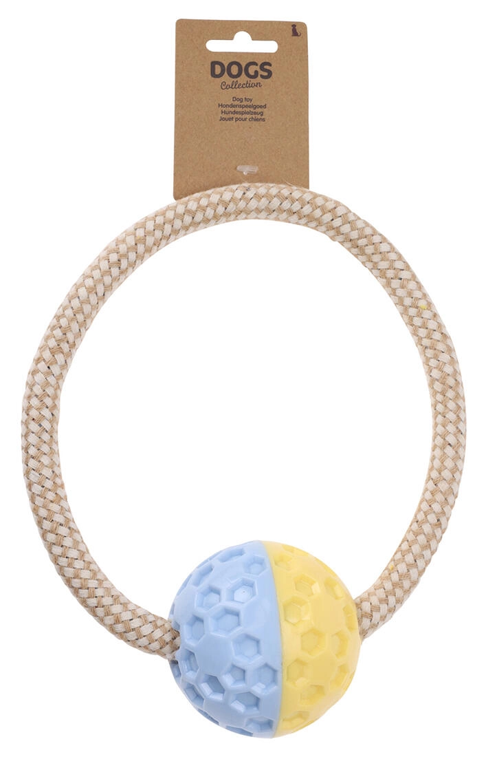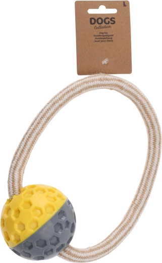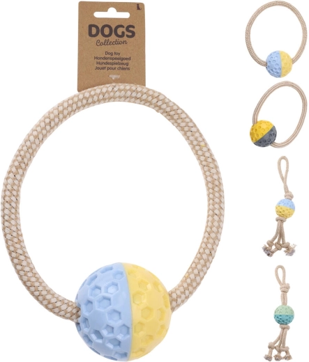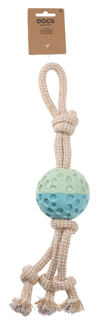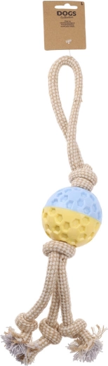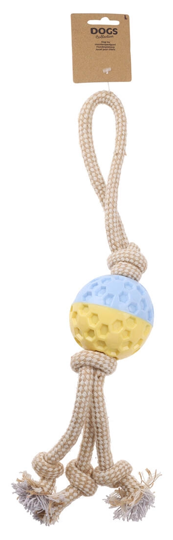 Univerzális kutyajáték a mindennapi szórakozáshoz – masszív kötél texturált TPR labdával. Ideális dobáláshoz, apportírozáshoz és húzócskához. A TPR és pamut tartós kombinációja kíméletes a fogakhoz, támogatja a fogápolást, és biztos fogást nyújt kutyának és gazdinak egyaránt.