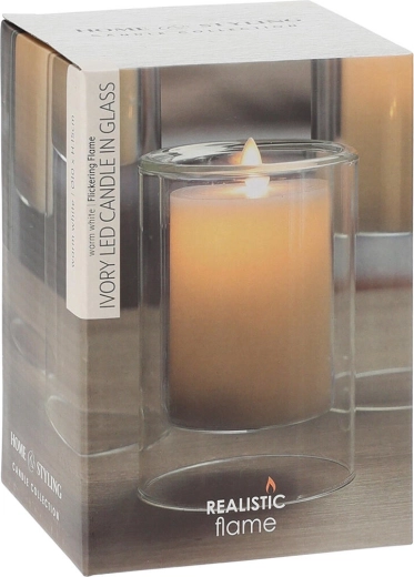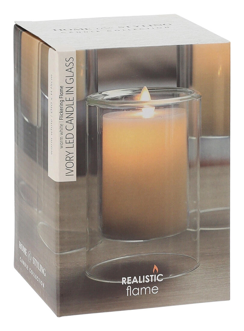 Ez a stílusos LED gyertya 10 × 15 cm méretben tiszta üveg burkolatban kapott helyet, amely kiemeli modern megjelenését. A visszafogott Ivory szín illik bármely enteriőrhöz, és könnyen kombinálható más dekorációkkal.