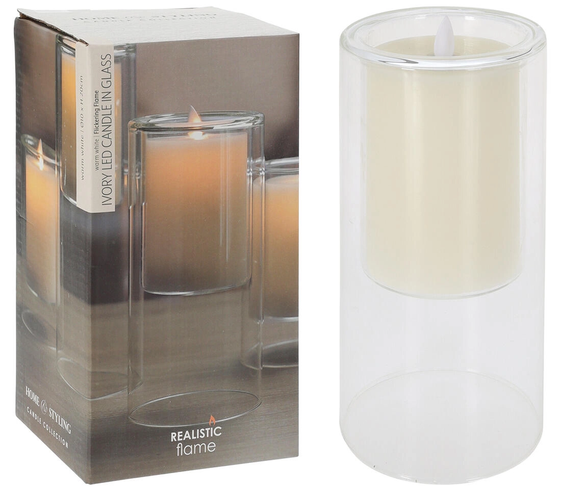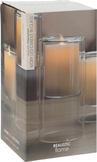 IVORY LED gyertya üvegben, pislákoló lánggal 10 × 20 cm