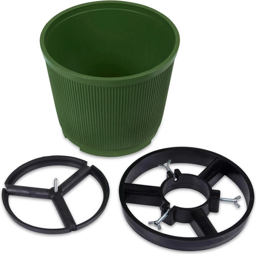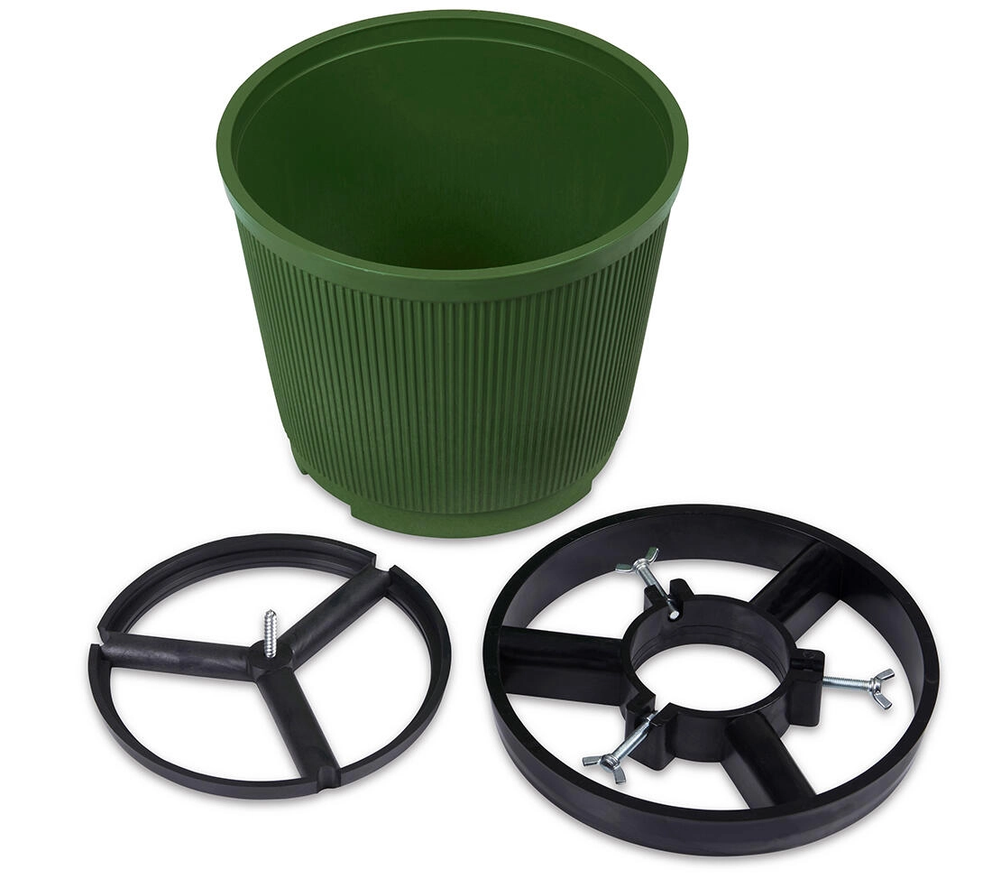 A kivehető műanyag elem megkönnyíti a tisztítást és a kezelést. A még nagyobb stabilitás érdekében az alap homokkal és vízzel is megtölthető. A nagy szerelőnyílásnak köszönhetően az állvány széles törzsátmérő-tartományhoz alkalmas.