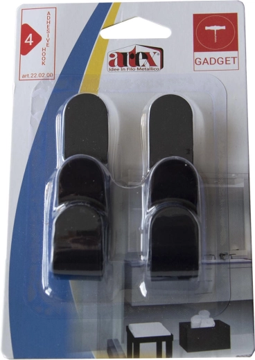 Öntapadós téglalap alakú fekete akasztók, 4 darabos készlet