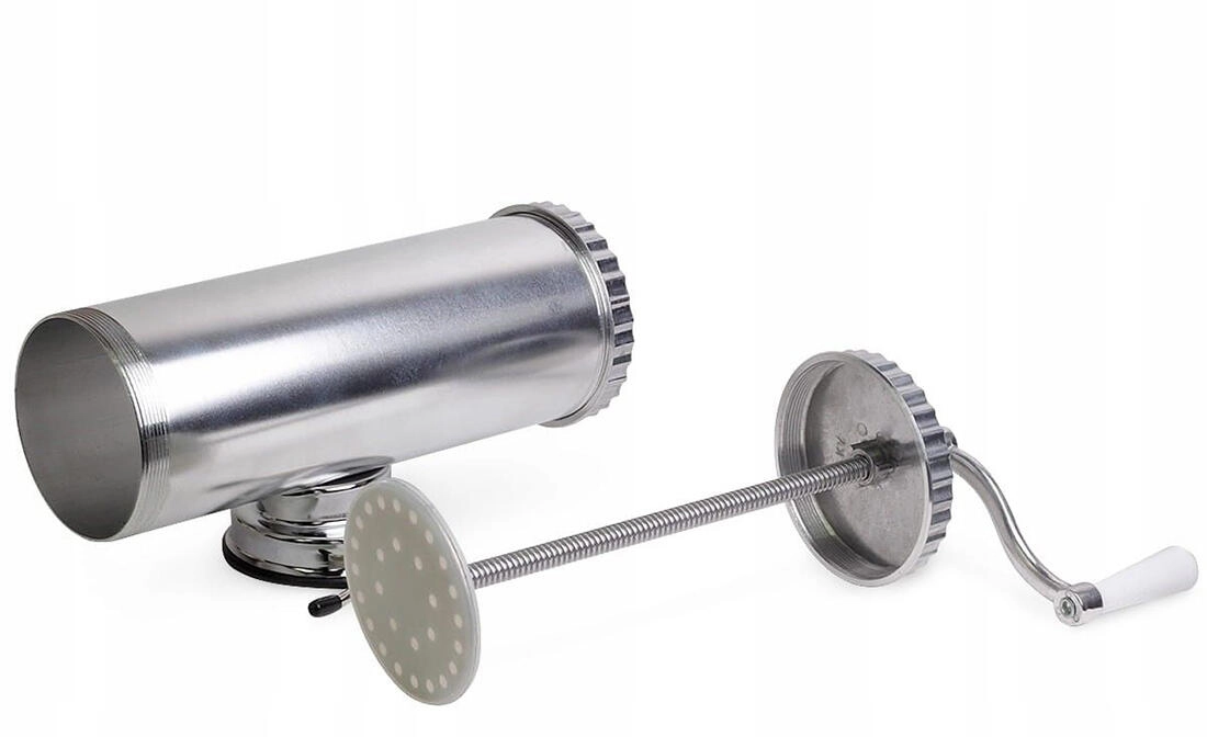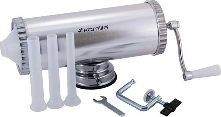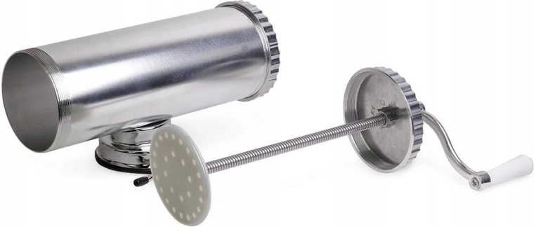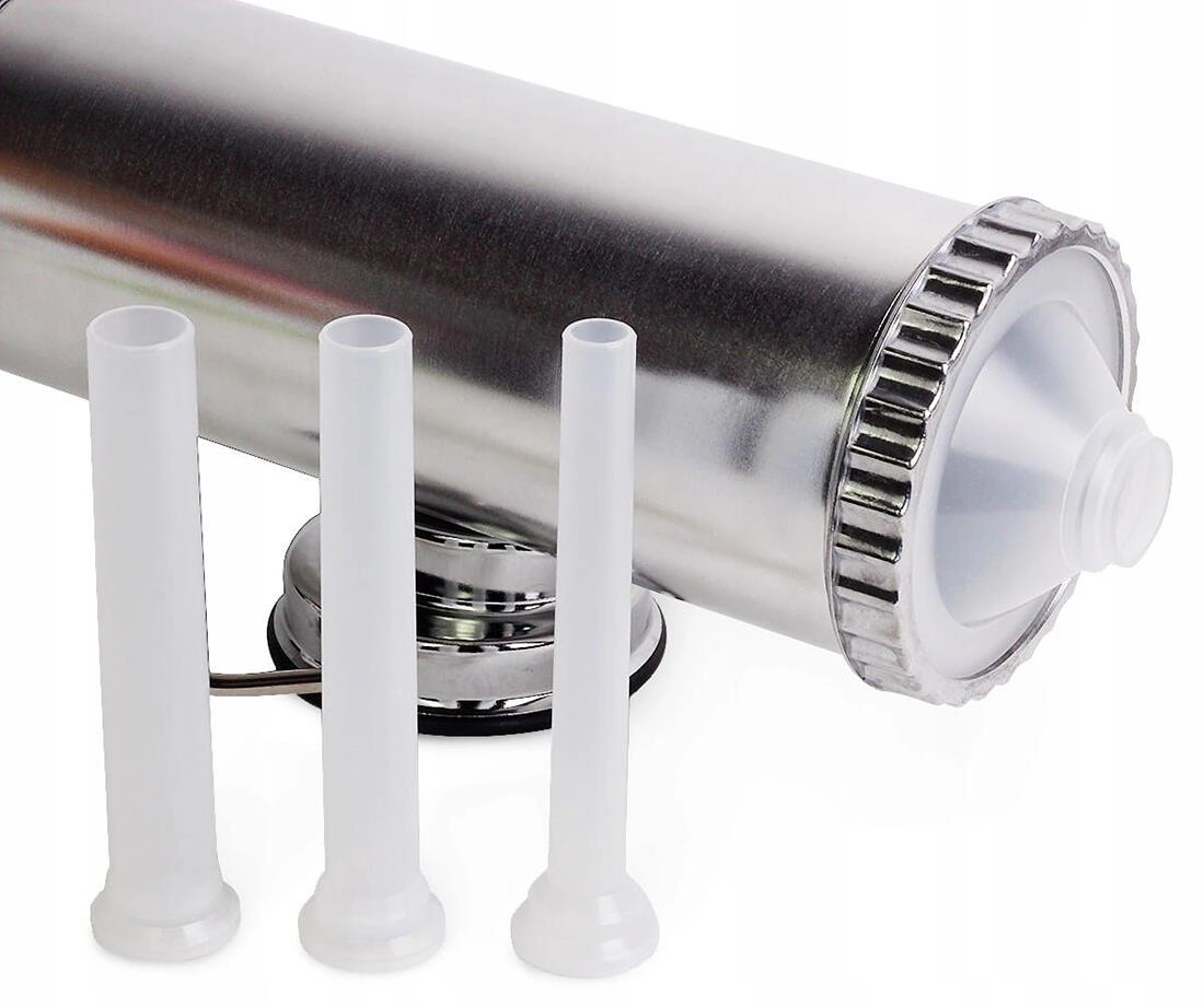 A munkavégzés stabilitását az erős tapadókorong és a csavaros rögzítési lehetőség garantálja. A csomag tartalmaz 3 különböző átmérőjű toldatot hurkához, vékony kolbászhoz és kabanoshoz. A cserélhető csövek megkönnyítik a méret gyors váltását a recepthez és a bél típusához igazodva.