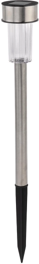 Stílusos, rozsdamentes acélból készült napelemes lámpa, amely takarékos és környezetbarát világítást biztosít kertbe, teraszra és felhajtóra. Az 1 fehér LED kellemes, tájékozódást segítő fényt ad, ON/OFF kapcsolóval és tartós IP44 védelemmel rendelkezik. Egyszerű telepítés a műanyag földszúró tüskének köszönhetően, kábelezés nélkül.