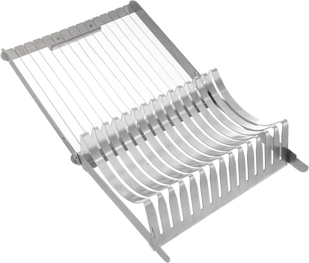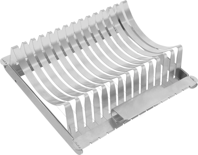 Praktikus rozsdamentes szeletelővel egyszerre akár 15 egyenletes szeletet vághat kelttésztás vagy burgonyás knédből, kb. 1,4 cm vastagságban. A erős rozsdamentes húrok gyors és tiszta vágást biztosítanak, könnyen tisztítható és mosogatógépben mosható.